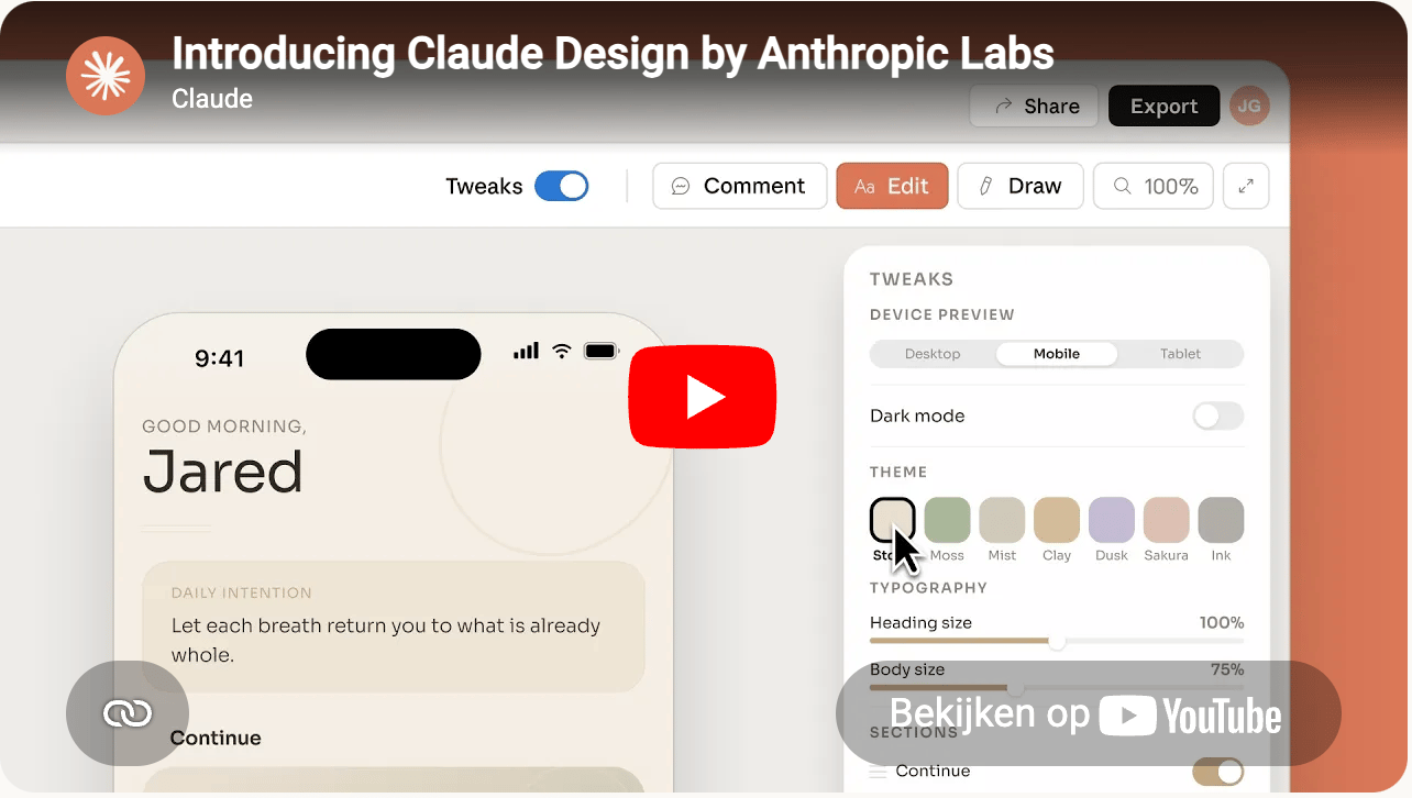 Een dag later volgde Claude Design. Deze tool richt zich op founders, productmanagers en marketeers die snel van idee naar visueel resultaat willen. Beschrijf wat je nodig hebt en Claude maakt een eerste ontwerp. Je verfijnt via gesprek, opmerkingen of schuifregelaars.