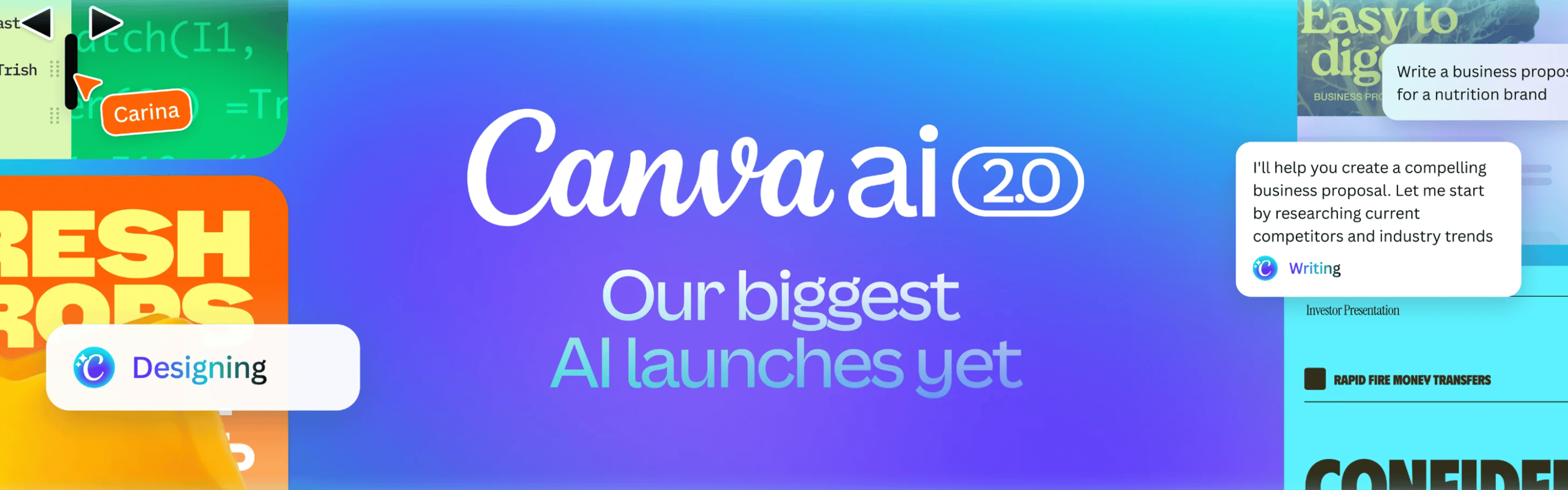 Canva AI 2.0 kan zelf de juiste tools kiezen en combineren om complete ontwerpen te maken vanuit één beschrijving.