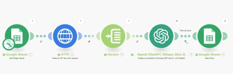 Hieronder vind je de gedetailleerde uitleg van alle stappen in de ‘Nieuws-naar-Content Machine: Deel 1’-automation. Het idee: we halen je zoekwoorden, doelgroep en criteria uit Google Sheets, doen automatisch een zoekopdracht bij Google News, en laten ChatGPT filteren op relevantie. Zo verzamel je alleen de écht interessante nieuwsberichten in je sheet.