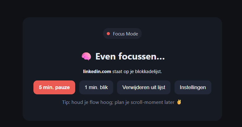 In een half uur had ik een werkende Focus Mode-extensie:
