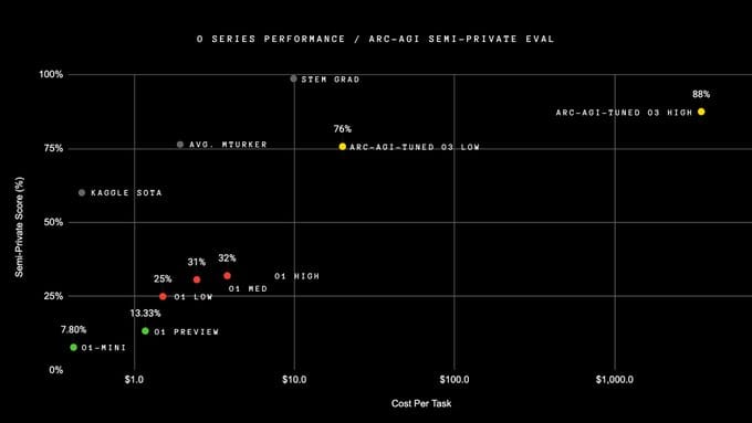 De prestaties zijn indrukwekkend: o3 scoort 87,5% op de ARC-AGI test. Dat is een flinke stap vooruit. Toch is het model niet perfect - soms struikelt het over simpele taken.